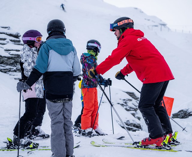 Our lessons at Coronet Peak start by the learner’s area at the far end of the base building. Please arrive for your lessons at least 15 minutes early as each lesson has a maximum group number for safety and optimal learning.
